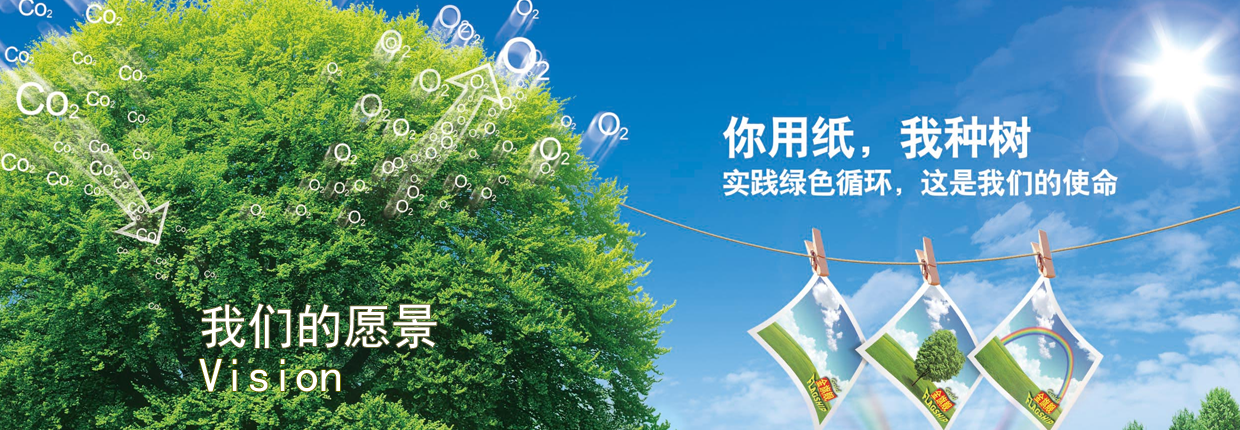 绿色循环: 植树造林及制桨造纸的绿色大循环, 到废纸回收还原再生的小循环。